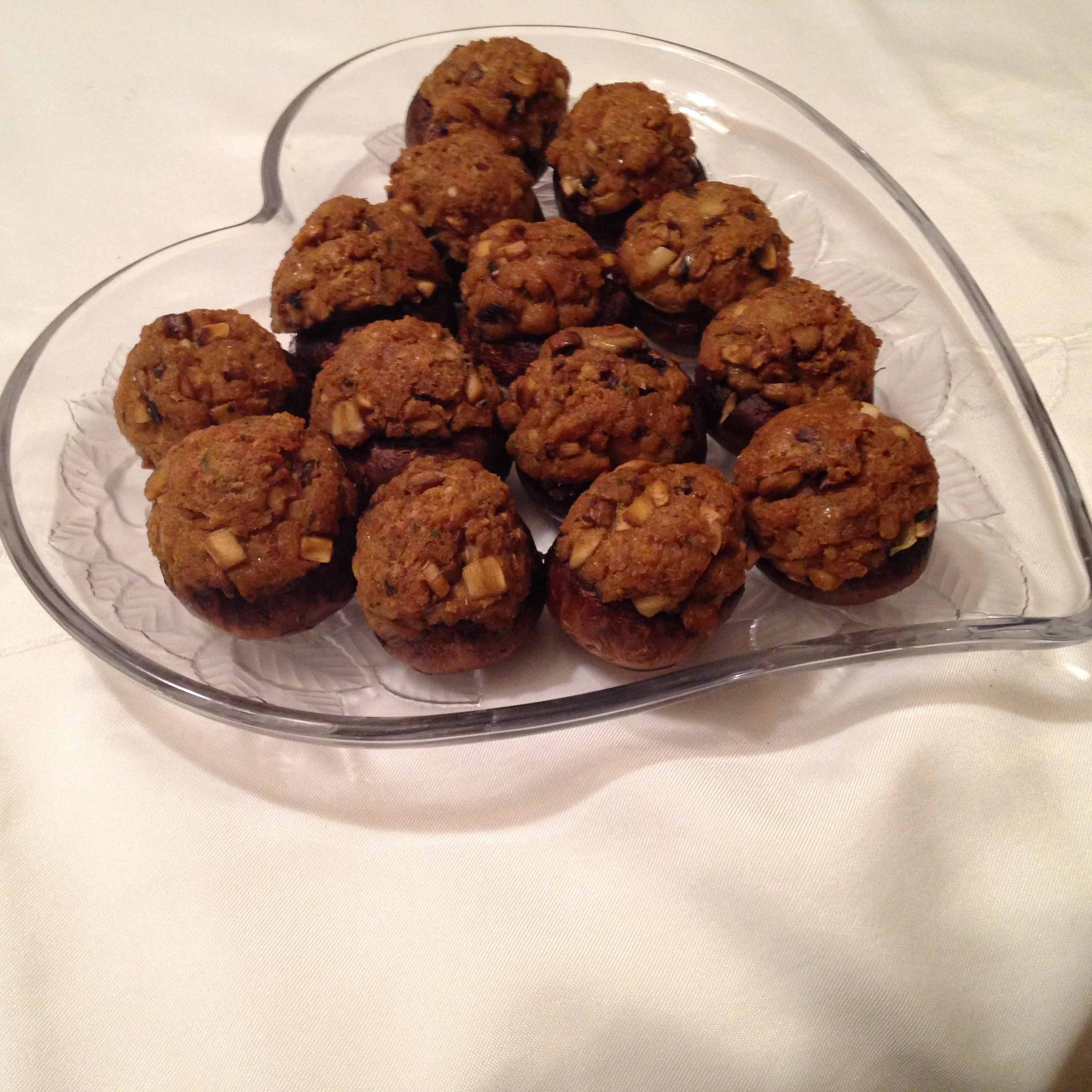 Fill each cap of the brown mushroom with a hefty portion of the stuffing and place in a baking dish that is at least 2 inches deep. Continue with all the mushroom caps.